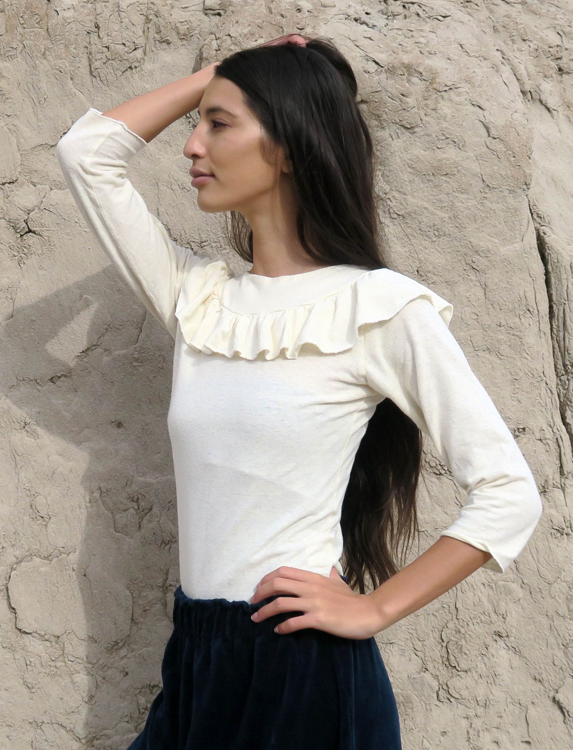 Style – The Edwardian collar is a modern twist to the ruffled necklines of its day. A sweet little ruffle is added to the yoke for a touch of romanticism.