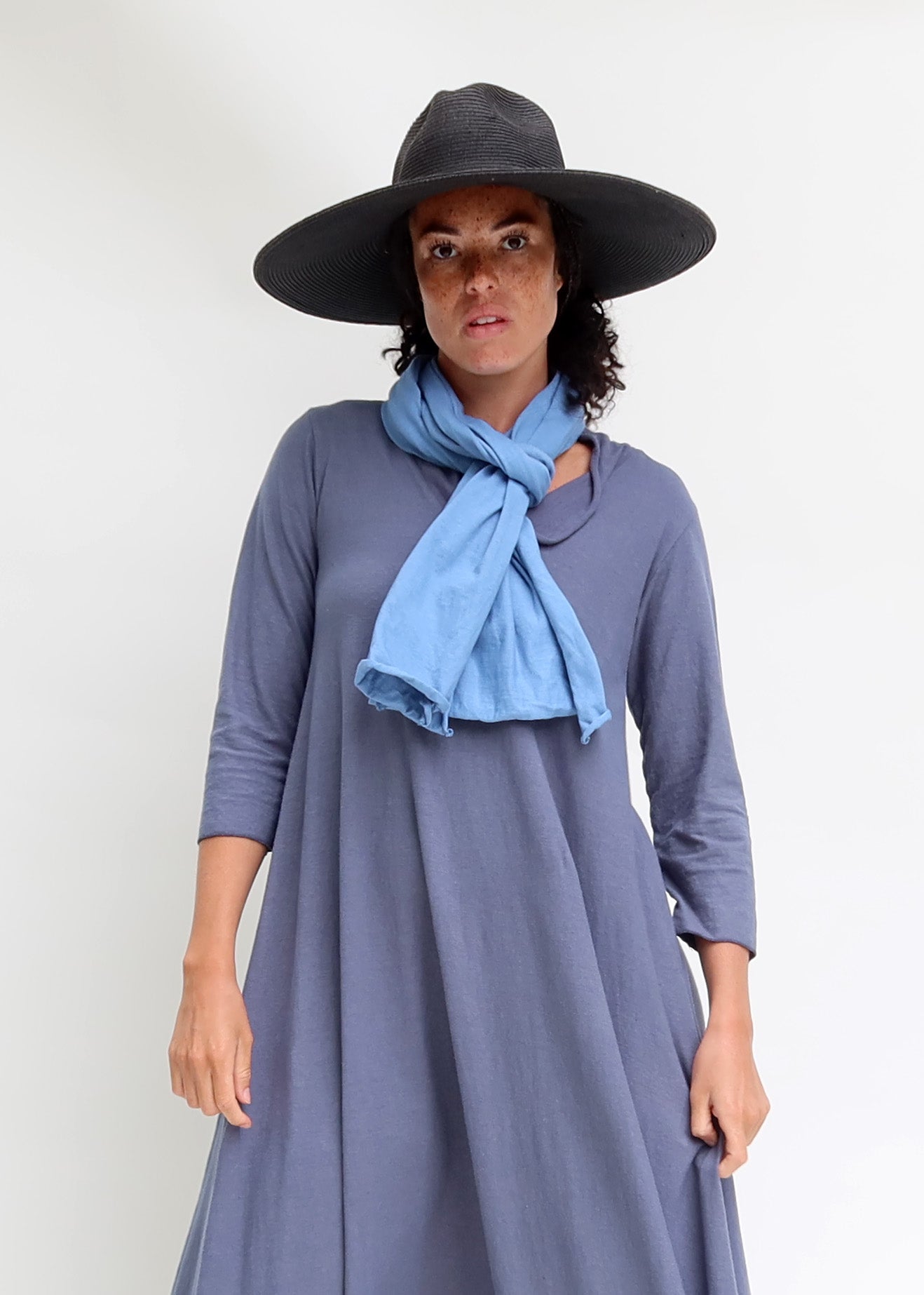 The 2 yard Shawl is an approximately 16X108 single panel in the fabric of your choice. Perfect for layering with our other designs and adding an extra layer of warmth when needed. A simple and sophisticated wardrobe staple you will reach for again and again.