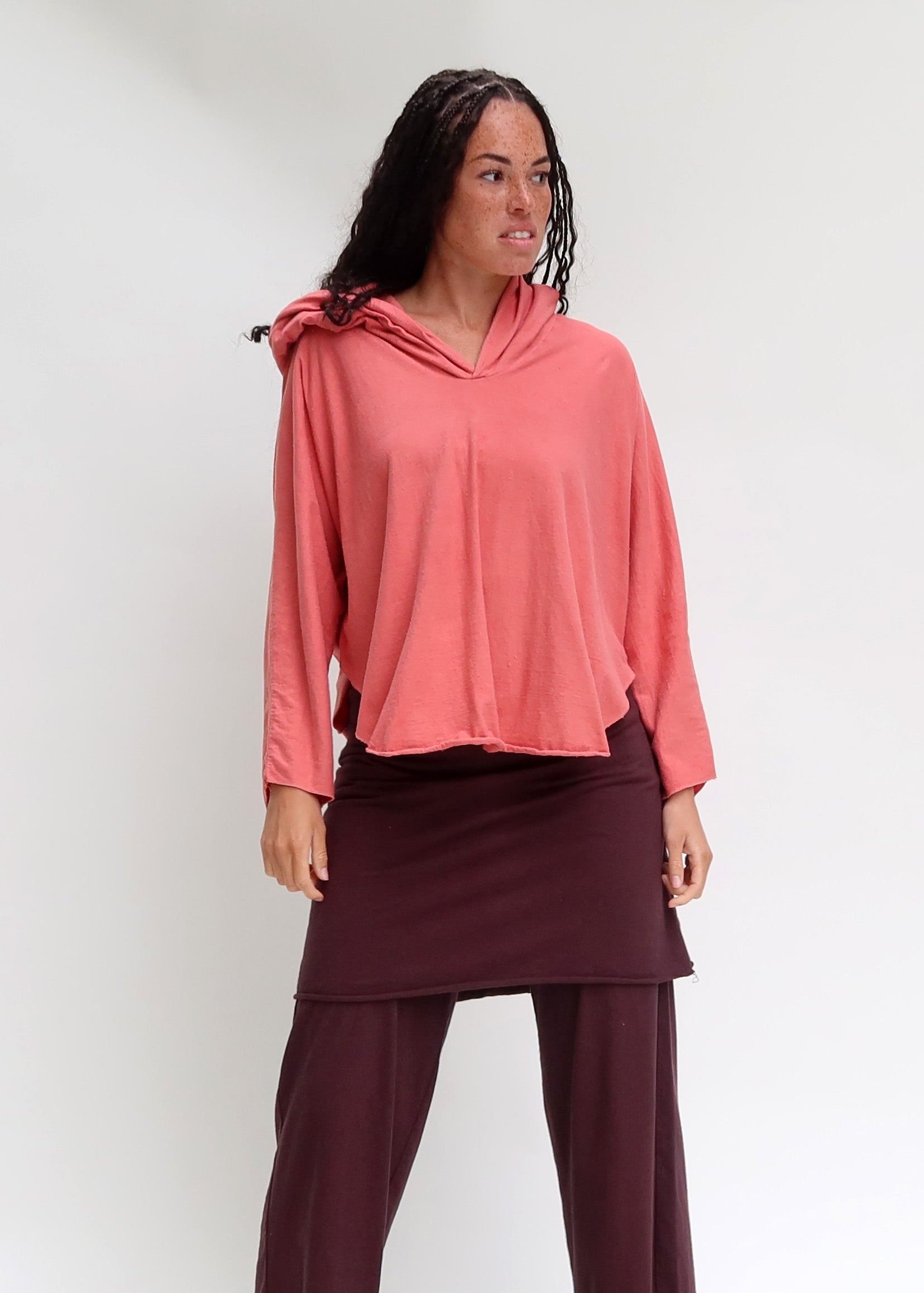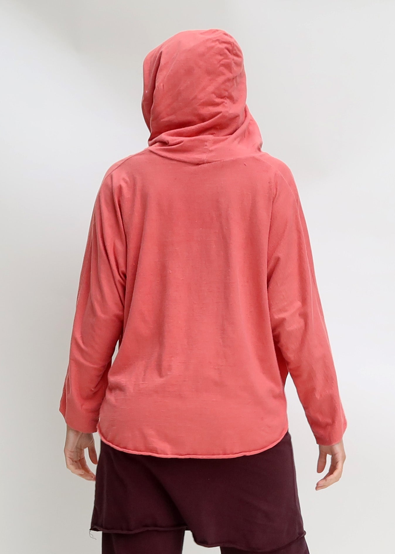 Style –The Beach Bum Hoodie is a spacious hood that creates a subtle, high V at the neck.