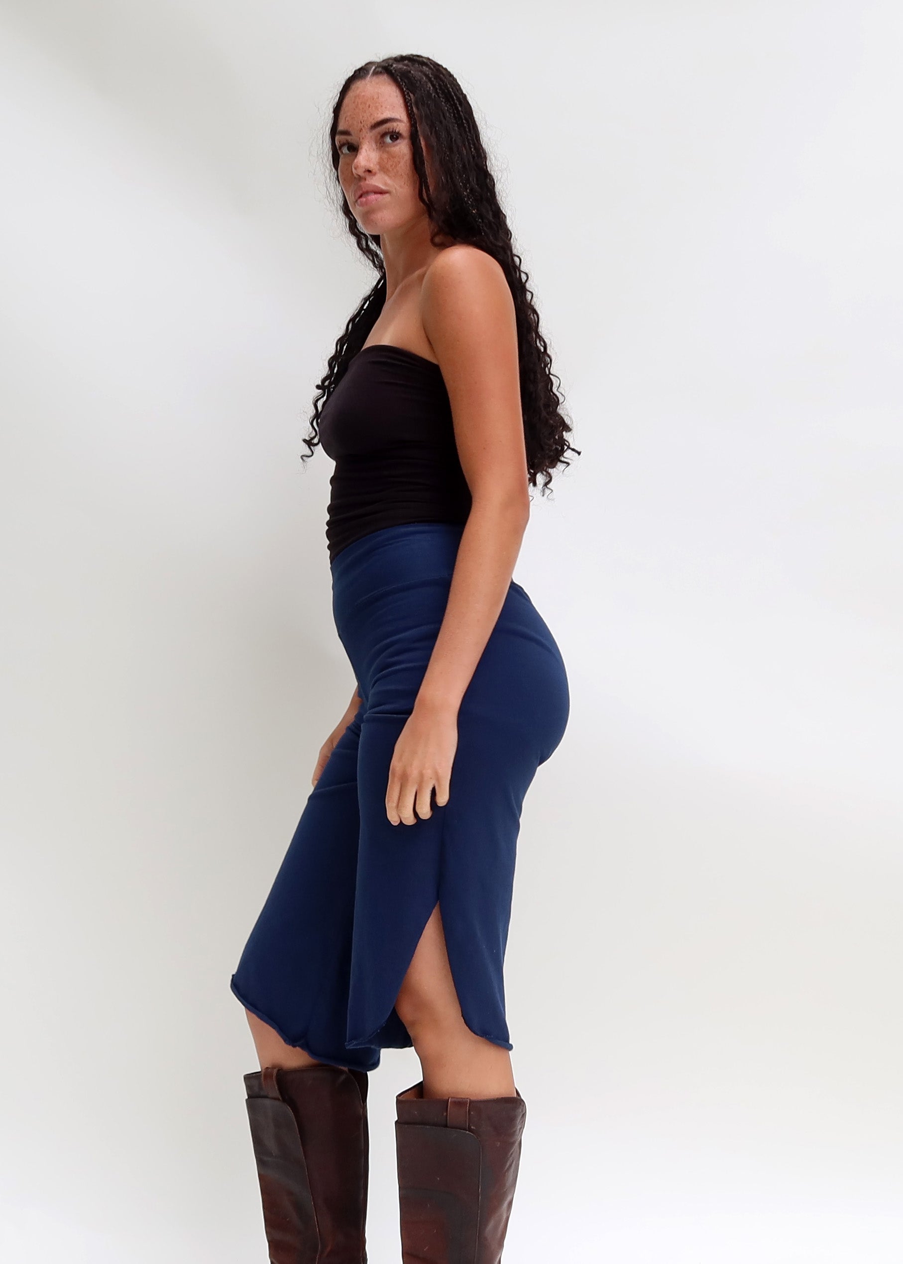 Shape - The Simplicity is a straight-cut, simple design that you will reach for again and again. Bottom hem has a curved edge slit for a subtle unique detail that can still be a staple garment.
