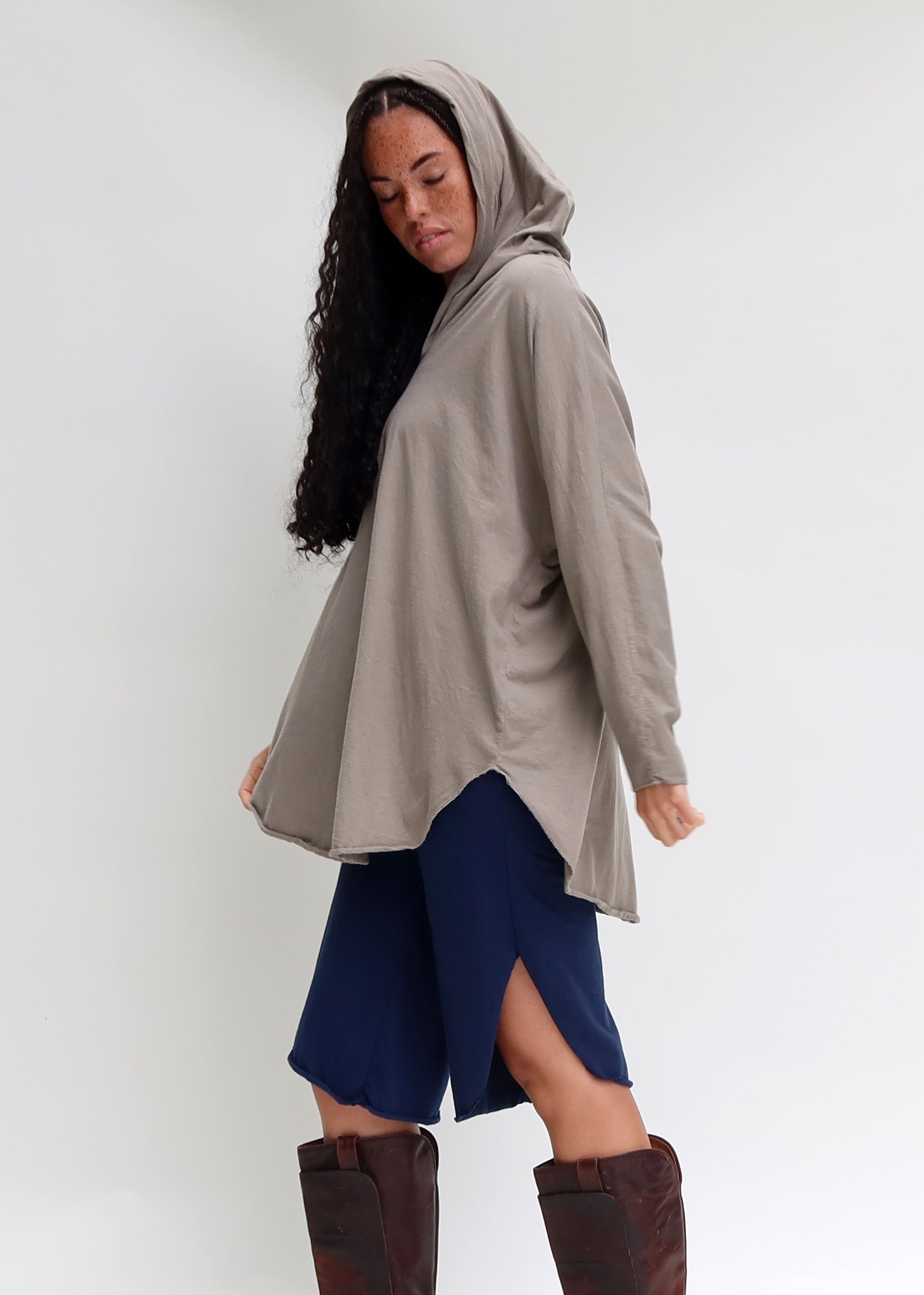 Our fabric descriptions include sizing recommendations when relative. Be sure to read through the fabric description that pops up when making your fabric choice on a product page for sizing recommendations specific to that fabric. For example we recommend sizing up with the Heavy Hemp/Organic Cotton knit, Heavy Stretch Hemp Organic Cotton Knit, and FLEECE STRETCH Hemp/Organic Cotton Knit for a regular fit. You can see all our Organic Fabrics Options HERE