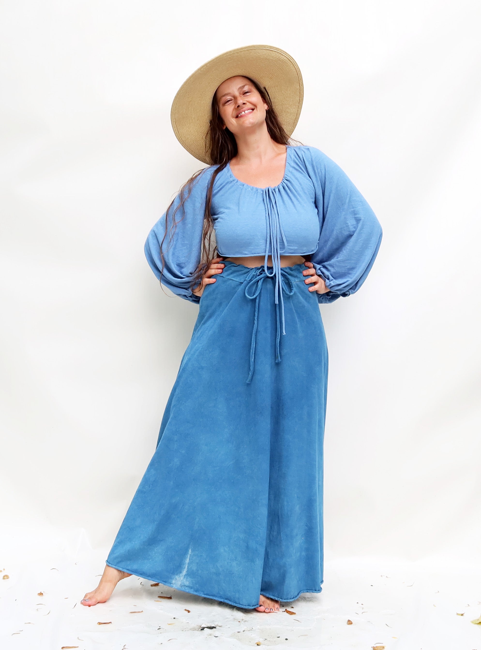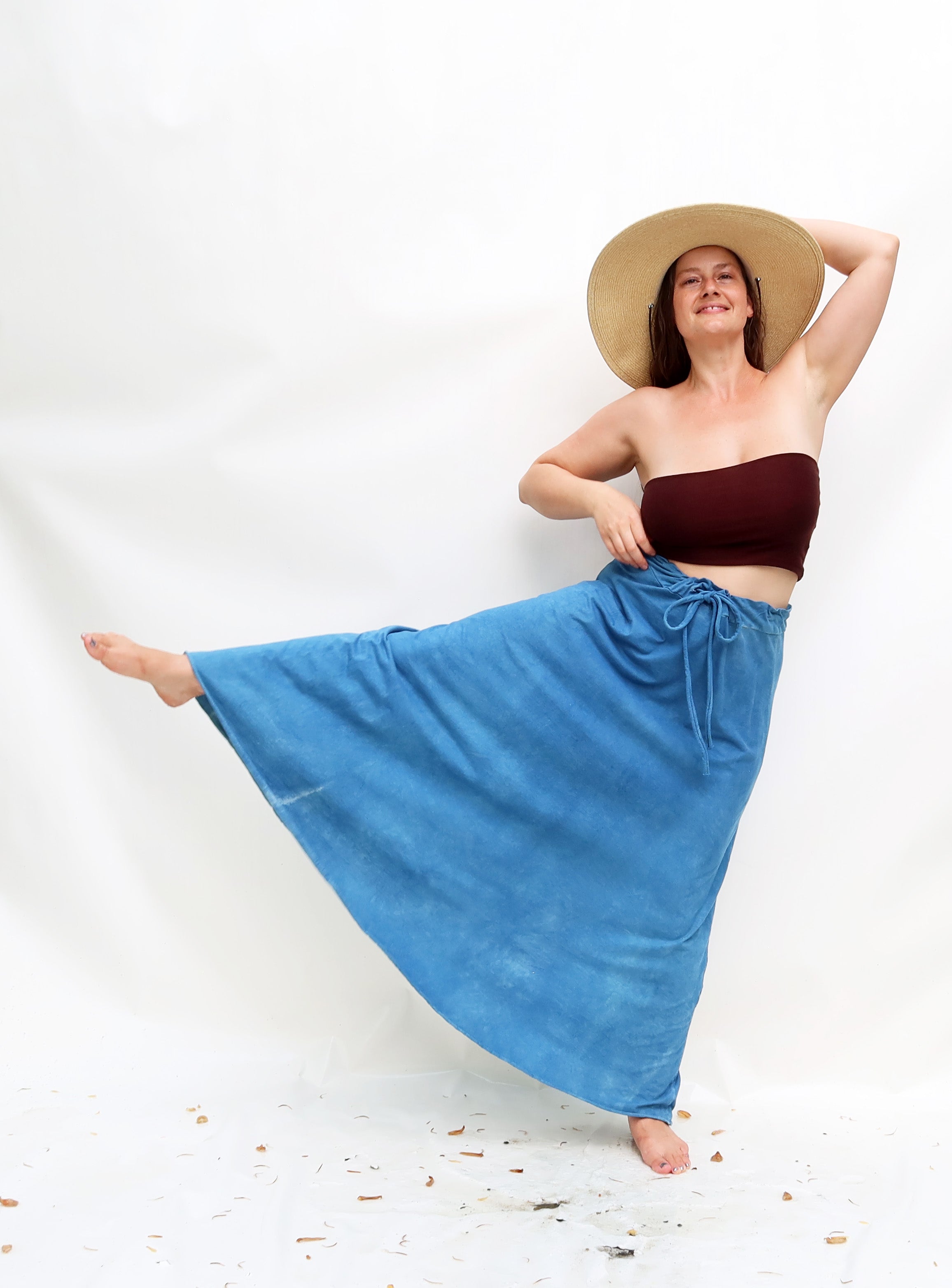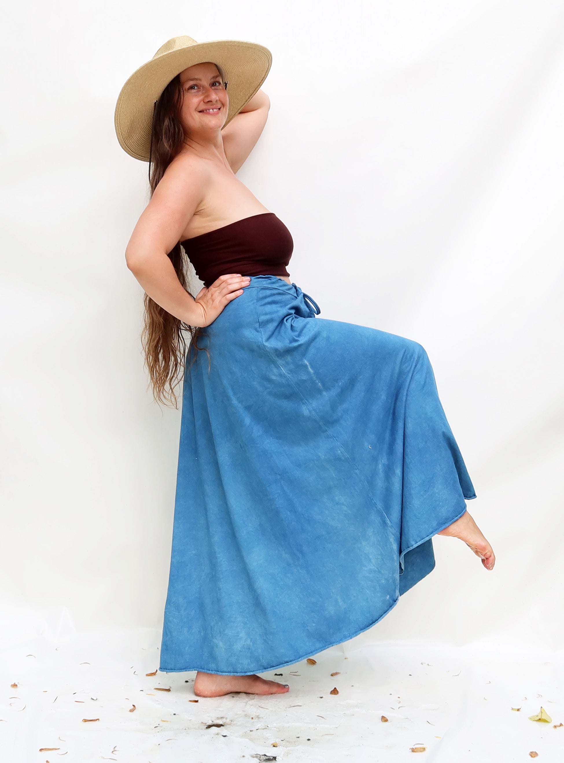 Shape - Drawstring waist makes it easy to adjust this design to your perfect fit. The Wanderer is a flowy, full-bodied A-line design, creating indispensable mobility and comfort that will keep you coming back to it again and again. The entire skirt is made from your fabric choice making this design a great choice if you prefer a no lycra waistband.