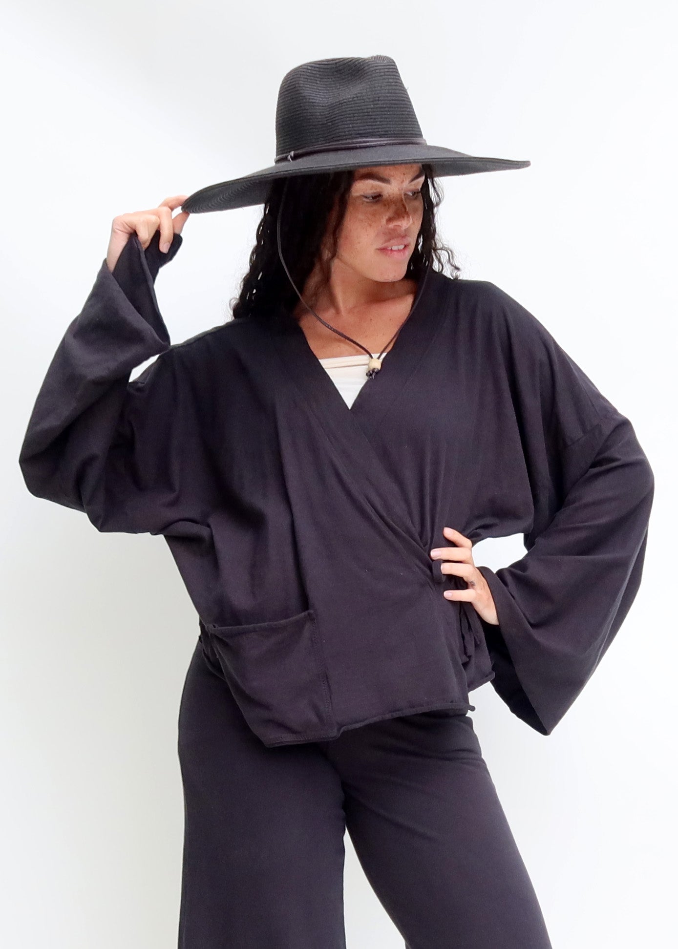 Inspired by the Yukata robe traditionally worn in Japan while visiting bathhouses the Ryokan is a collared wrap design that ties at the sides. A relaxed fit with a casual kimono sleeve and pocket for all your treasures. Sophisticated enough for a day running errands and comfy enough to become your favorite house dress.
