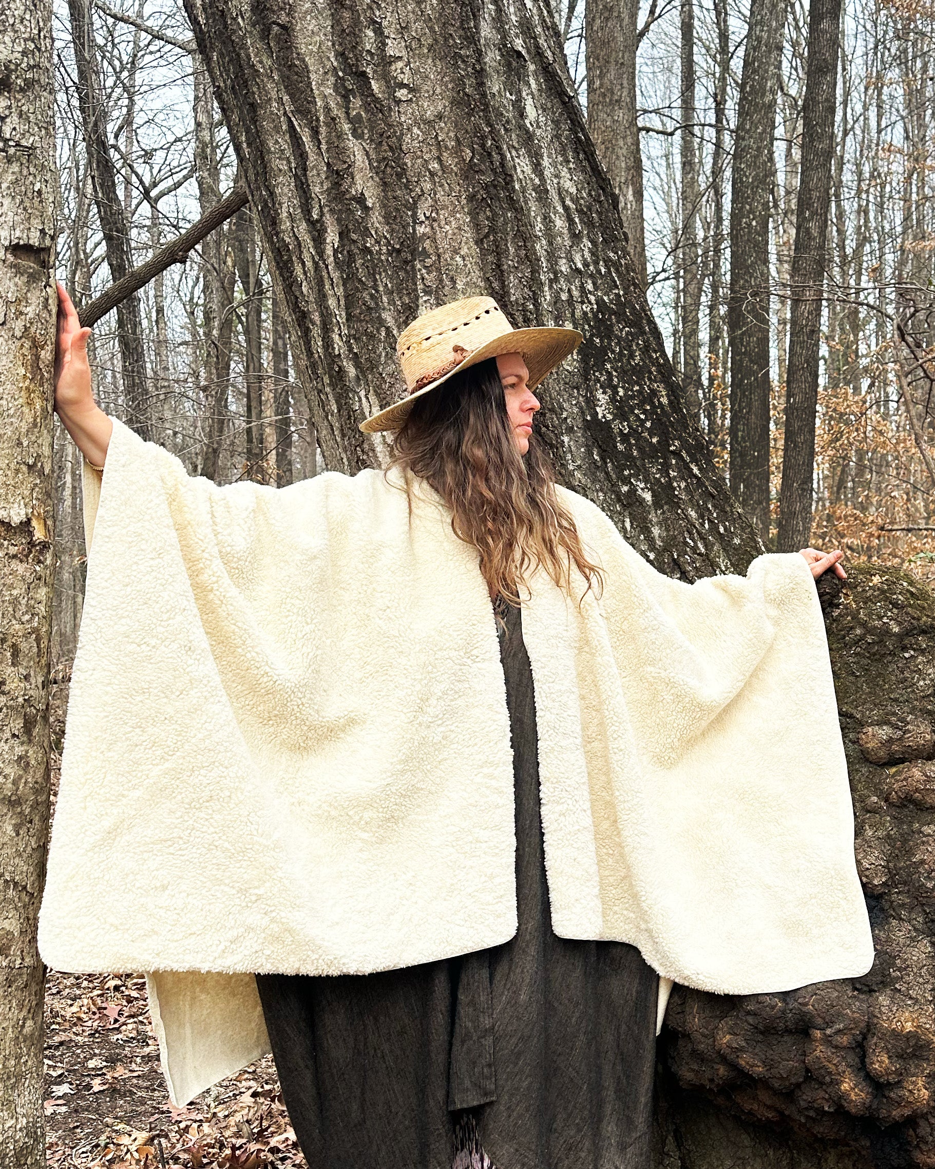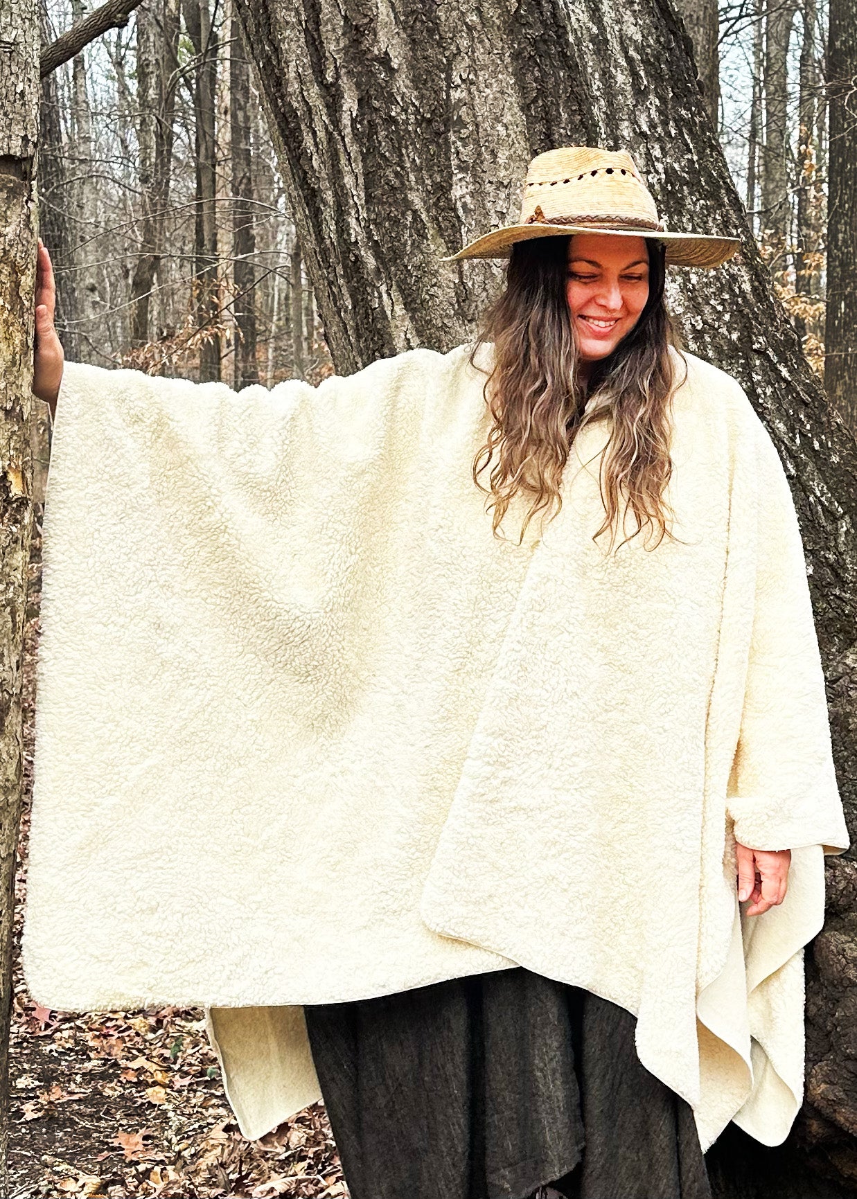We only have enough Organic Cotton Sherpa for 5 of these so don't wait if your in love!! The perfect way to add a little snuggle to any outfit. The Poncho Shawl is approximately 2 yards of material with a slit up the middle in half the length making it easy to drape over the shoulders and wrap for a range of styles. It's a wonderful layering piece that feels just at home in your meditation practice as it does running errands. This one size fits all unisex staple makes a great gift for your eco conscious soul tribe!!