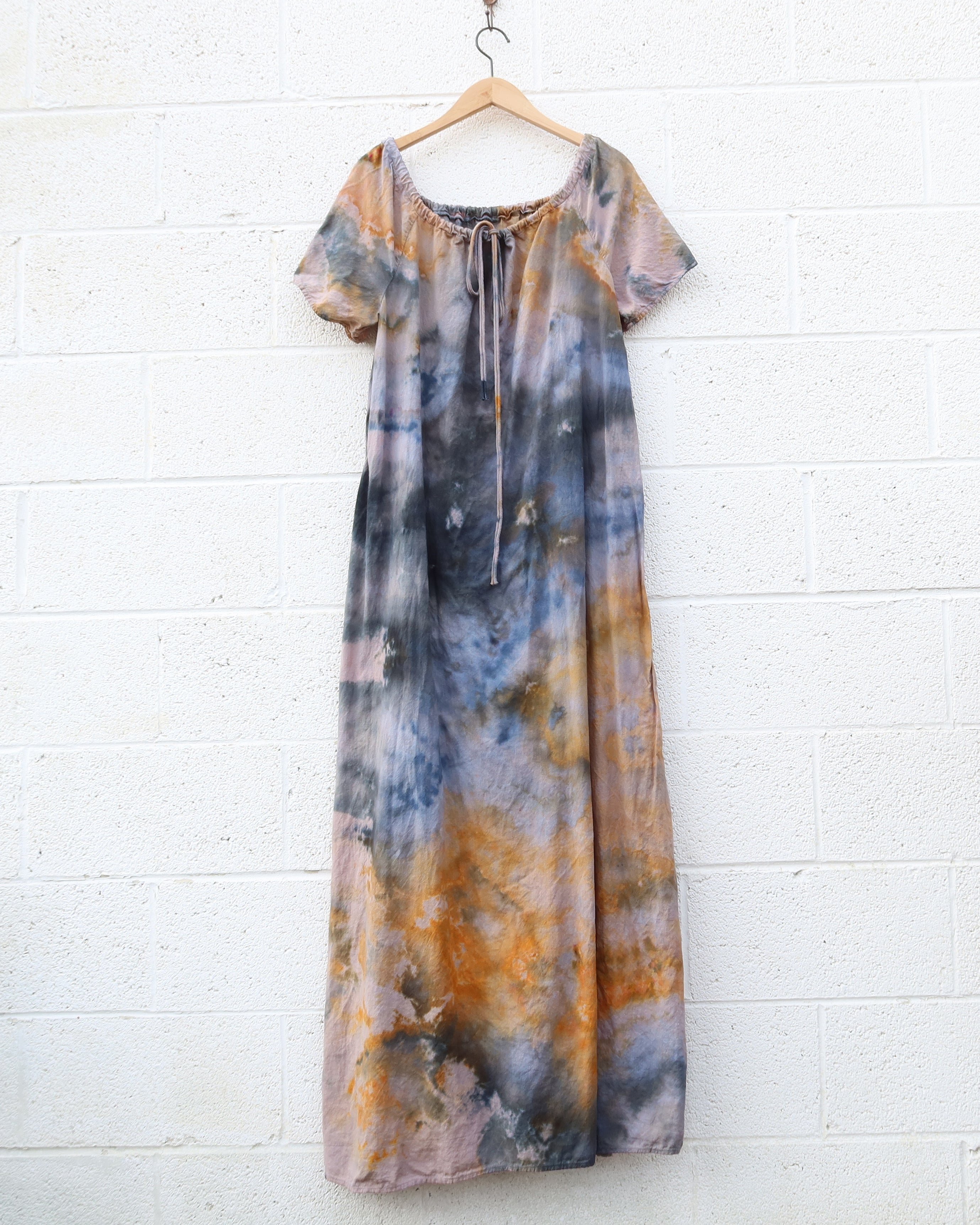 OOAK - Drawstring Collar Long Dress / S / Cotton Woven / Ice Dye (447)