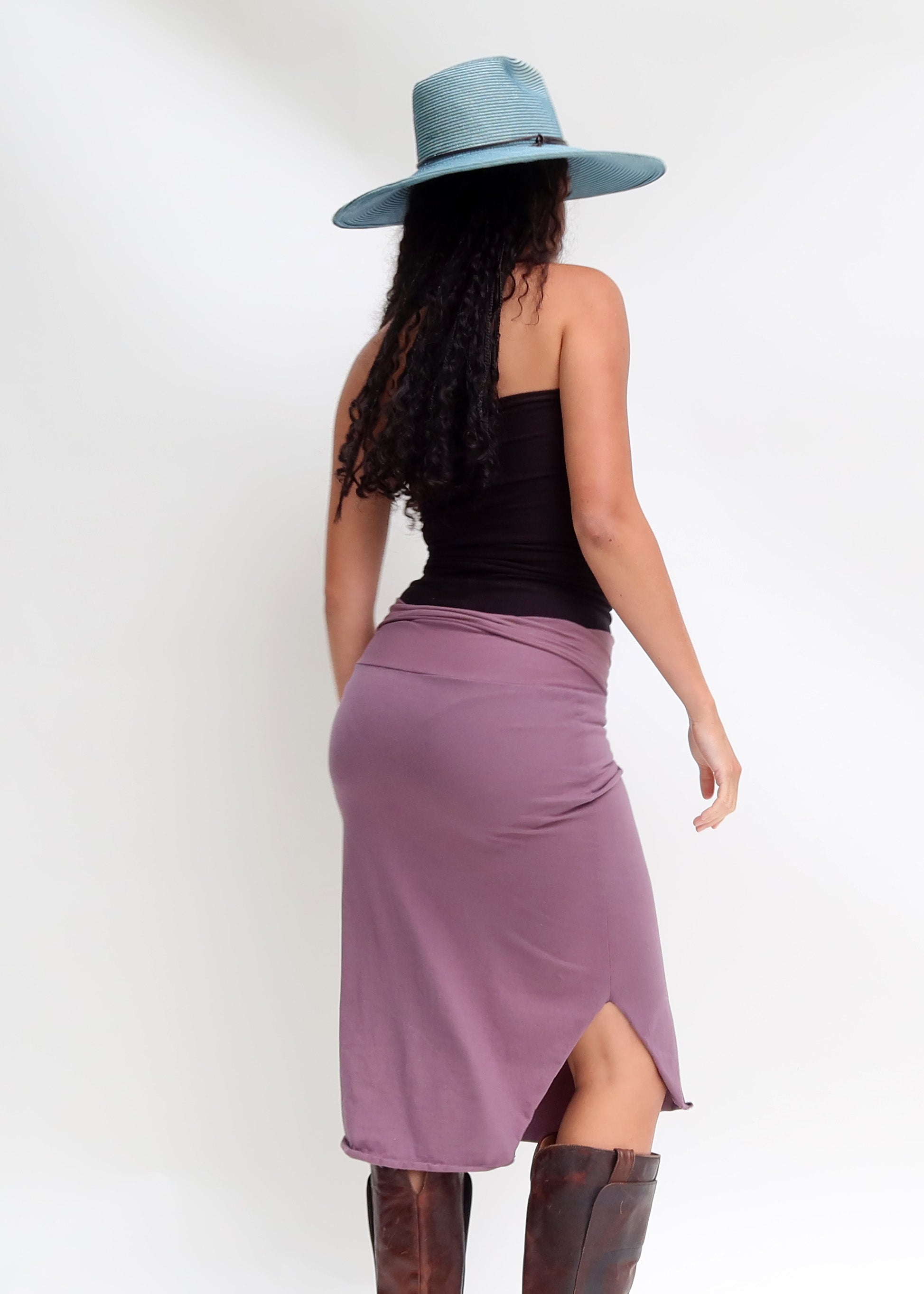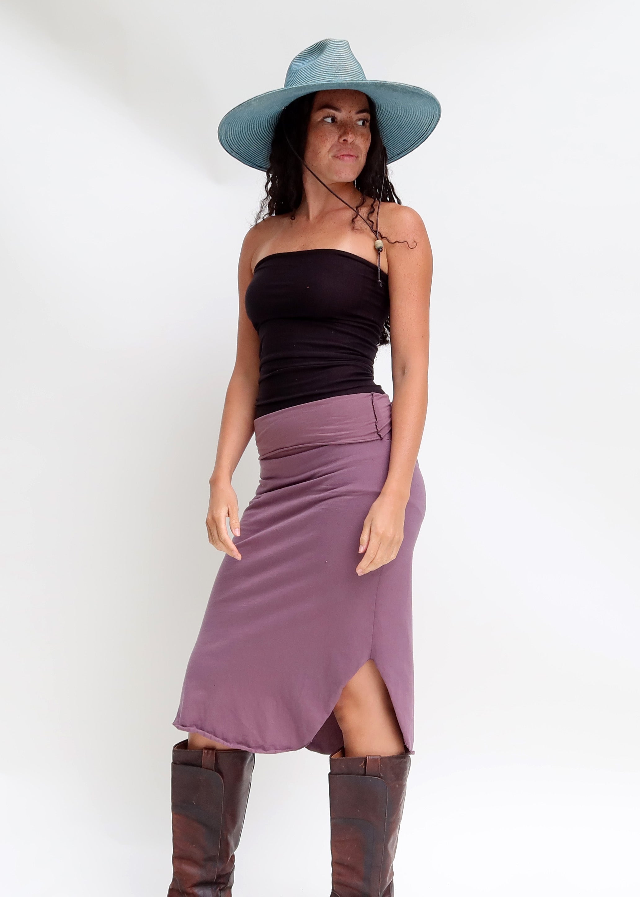 Shape - The Pencil shape is cut straight down from the hip, creating a more clean, linear silhouette when compared to our A-line Simplicity shape. Bottom hem has a curved edge slit for a subtle unique detail that can still be a staple garment.