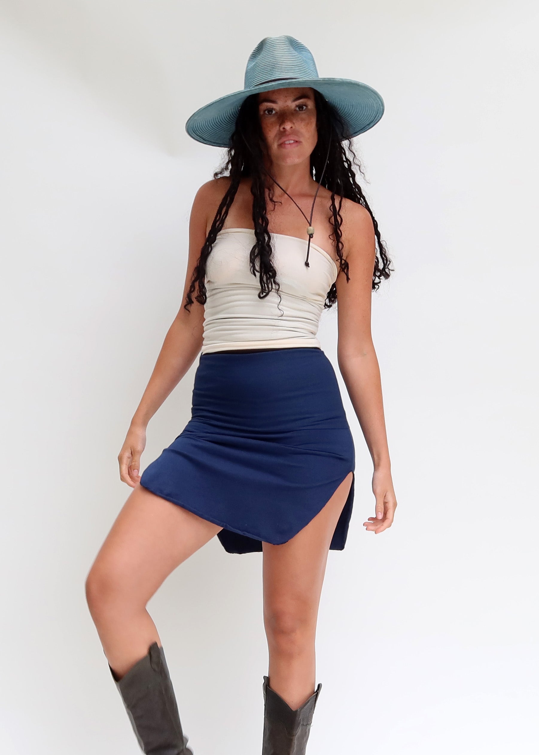 Shape - The Pencil shape is cut straight down from the hip, creating a more clean, linear silhouette when compared to our A-line Simplicity shape. Bottom hem has a curved edge slit for a subtle unique detail that can still be a staple garment.