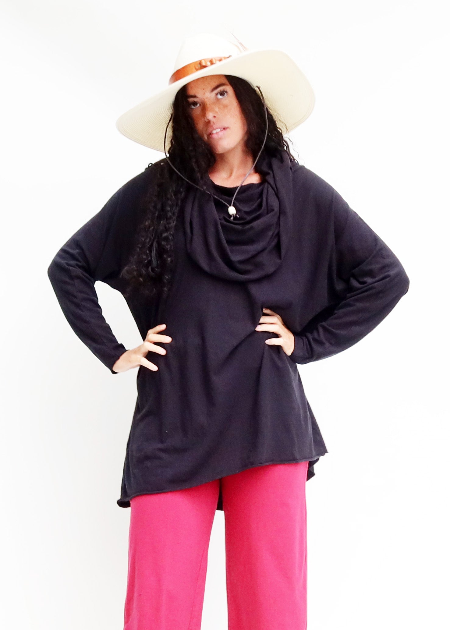 Style –The Super Cowl style is a low neckline with a long, wide cowl. This elegant design can be beautifully draped in the front or over the shoulders, or can easily be worn as a hood. One of our most versatile styles, the Super Cowl can shield from both sun and cold, carrying you through all the seasons.