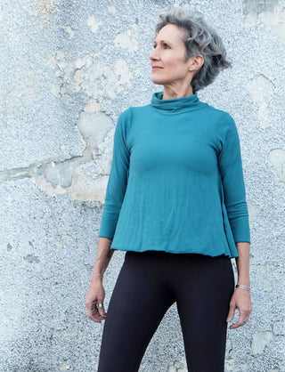 The Wanderer shape opens at the armpit into a full-bodied, flowy A-line design. For a less flowy but still open Silhouette view our Ojai Silhouette. For a more form fitting shape view our Simplicity Silhouette.