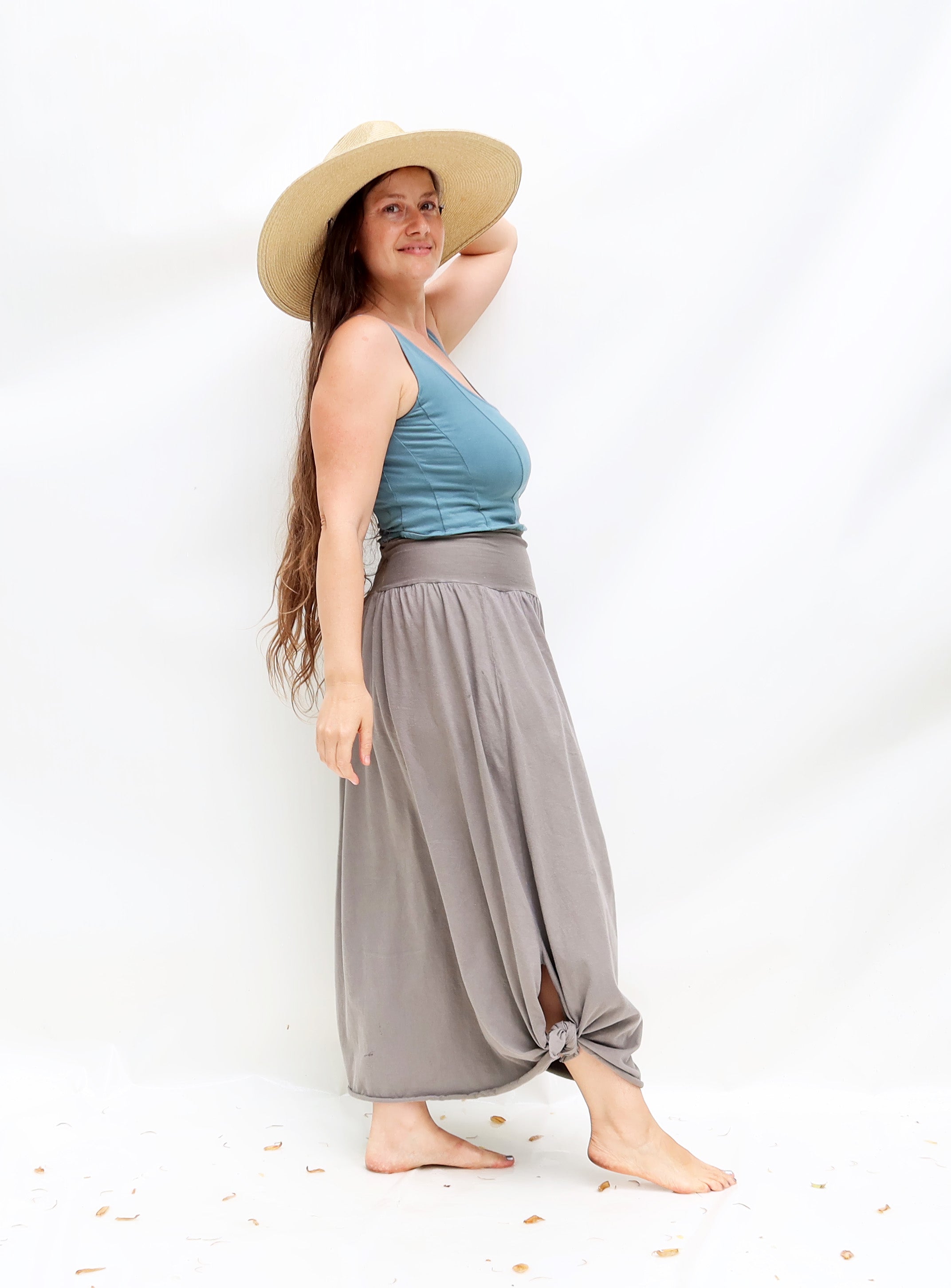 Shape - The Anoki is a relaxed fit design you will reach for again and again. Tie knot detail at ankle can be left tied or not for a subtle and fun detail.