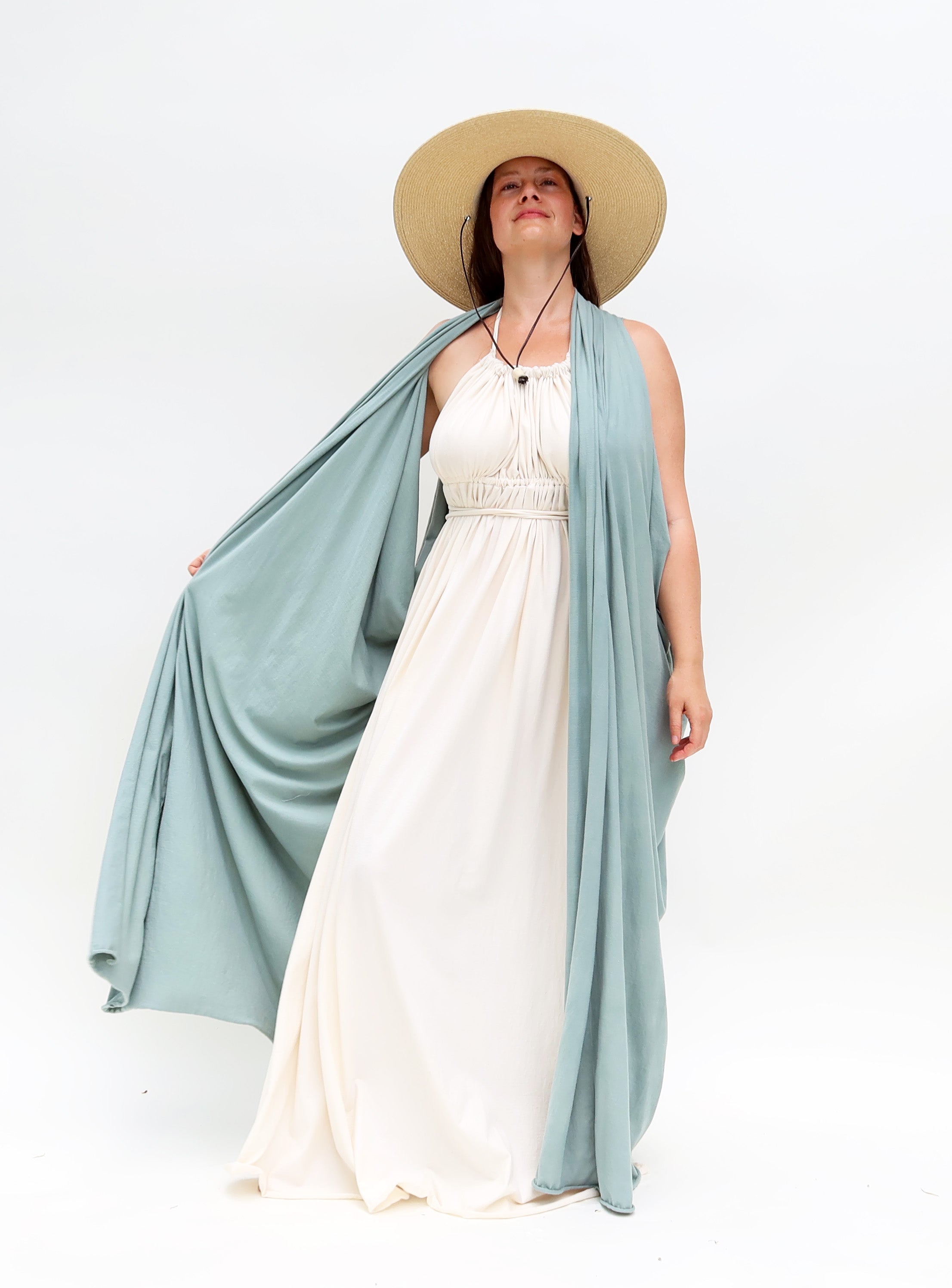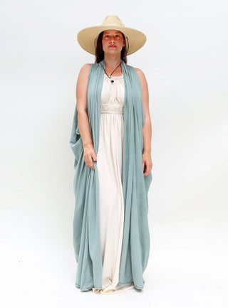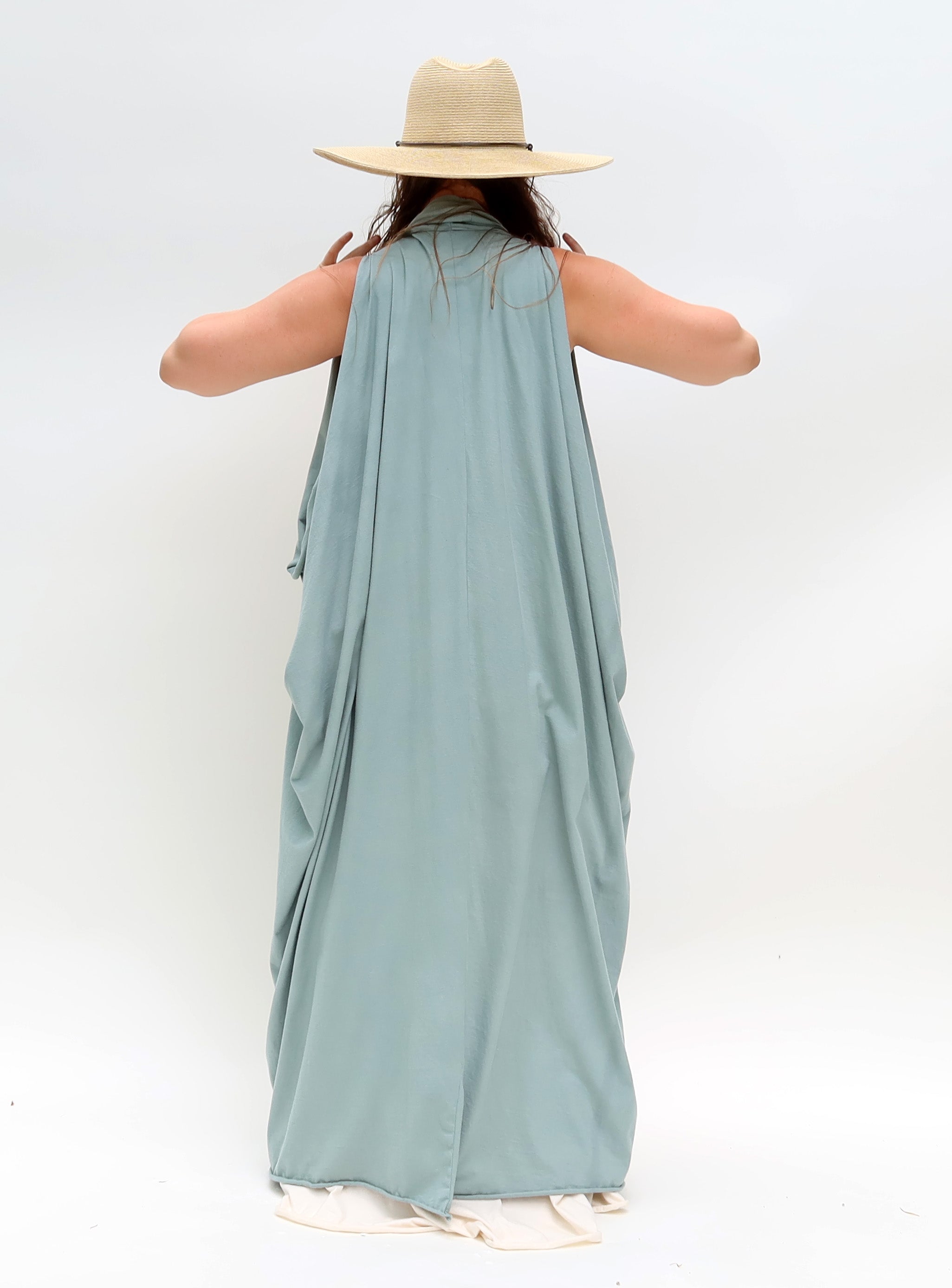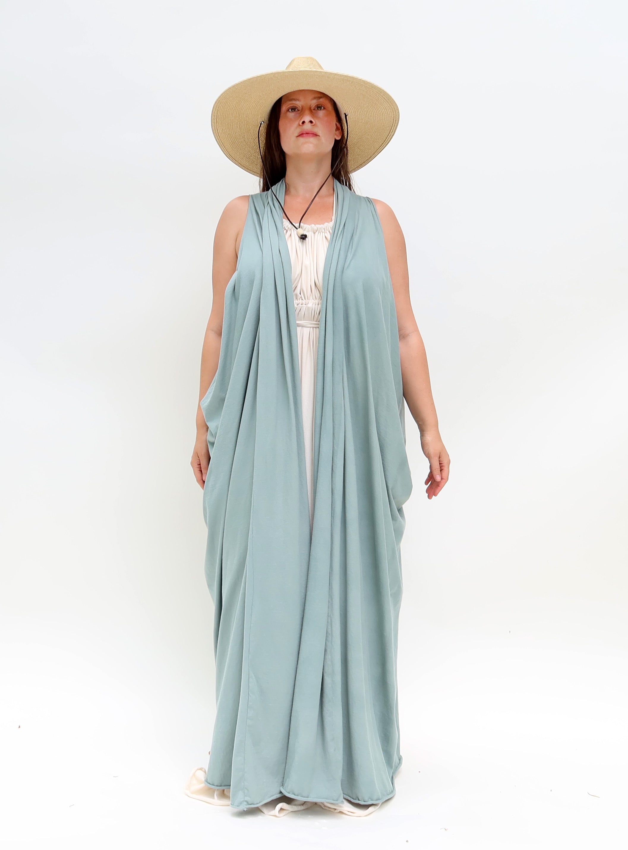The Bombay is a sleeveless design with dramatically draping armholes.The Cardigan is an open-front jacket with a border of fabric running the length of the open neckline. This design is simple yet unique and adds a level of artistic sophistication to any outfit.