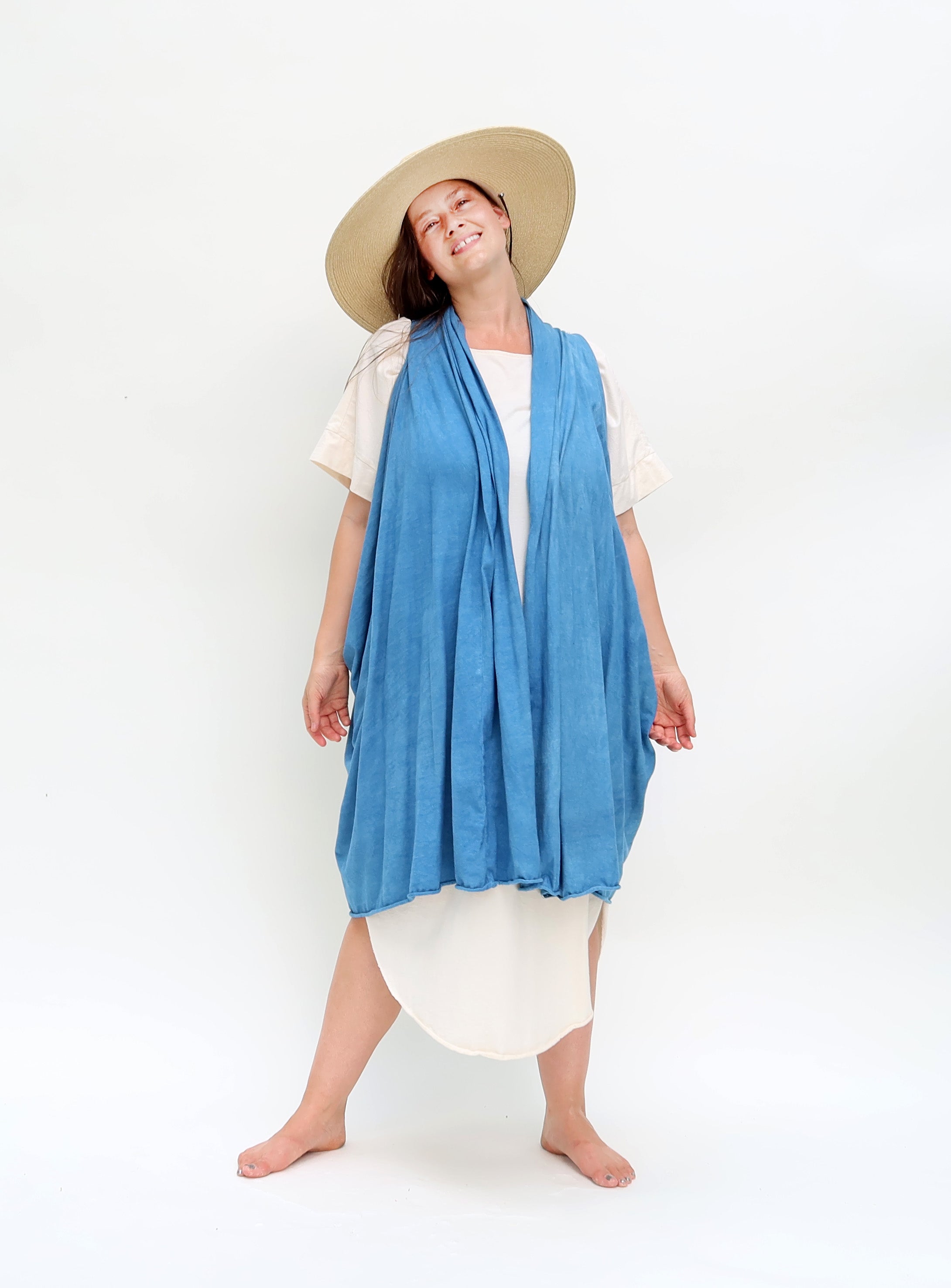 The Bombay is a sleeveless design with dramatically draping armholes.The Cardigan is an open-front jacket with a border of fabric running the length of the open neckline. This design is simple yet unique and adds a level of artistic sophistication to any outfit.