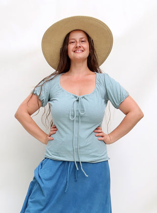 Cottage Sleeve Drawstring Collar Simplicity Shirt