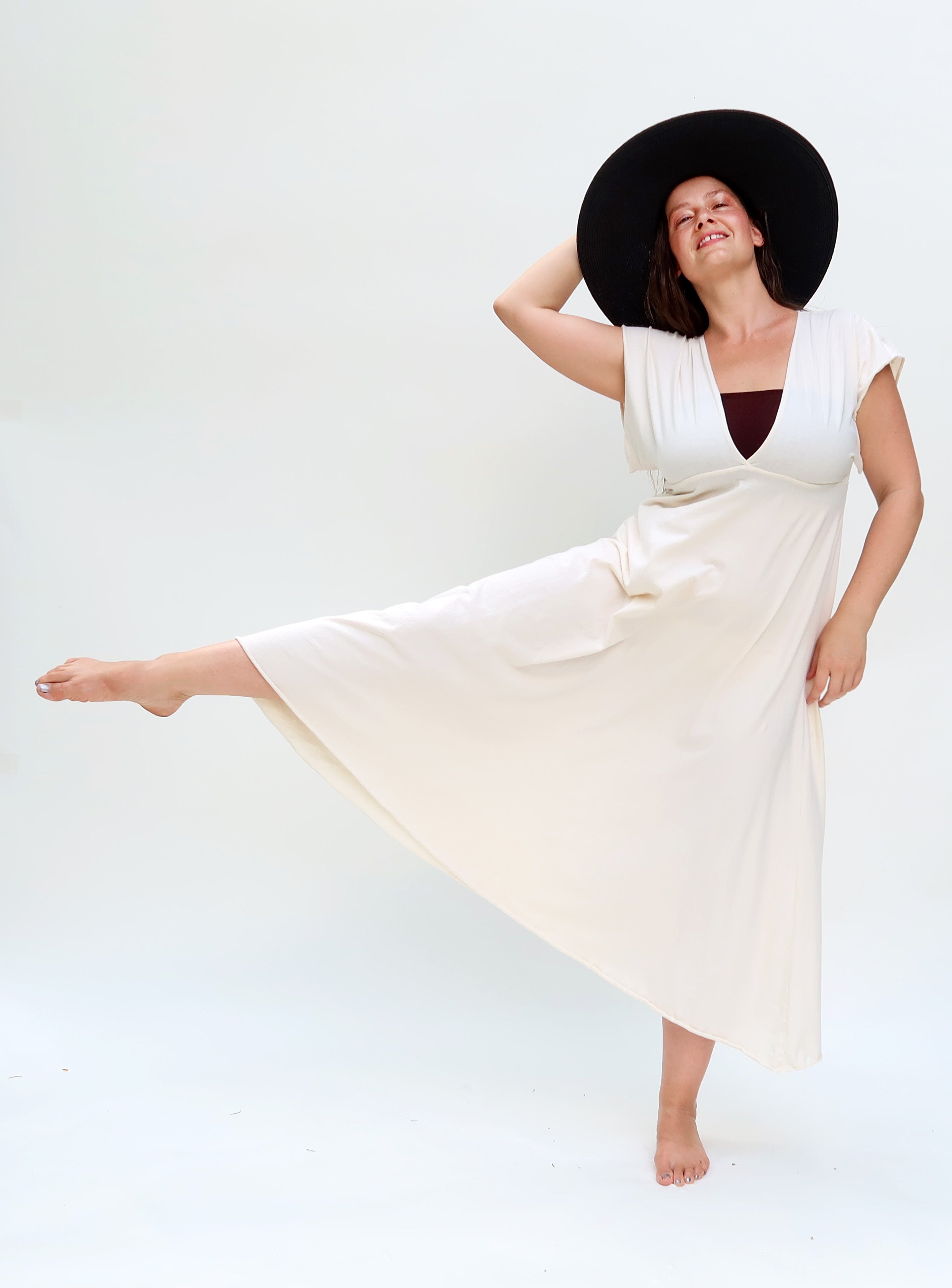Shape – The Empire Wanderer shape gathers just under the bust, accentuating the narrowest part of the waist, then floats out to a flowy, loose-fitting torso that is both functional and flattering.