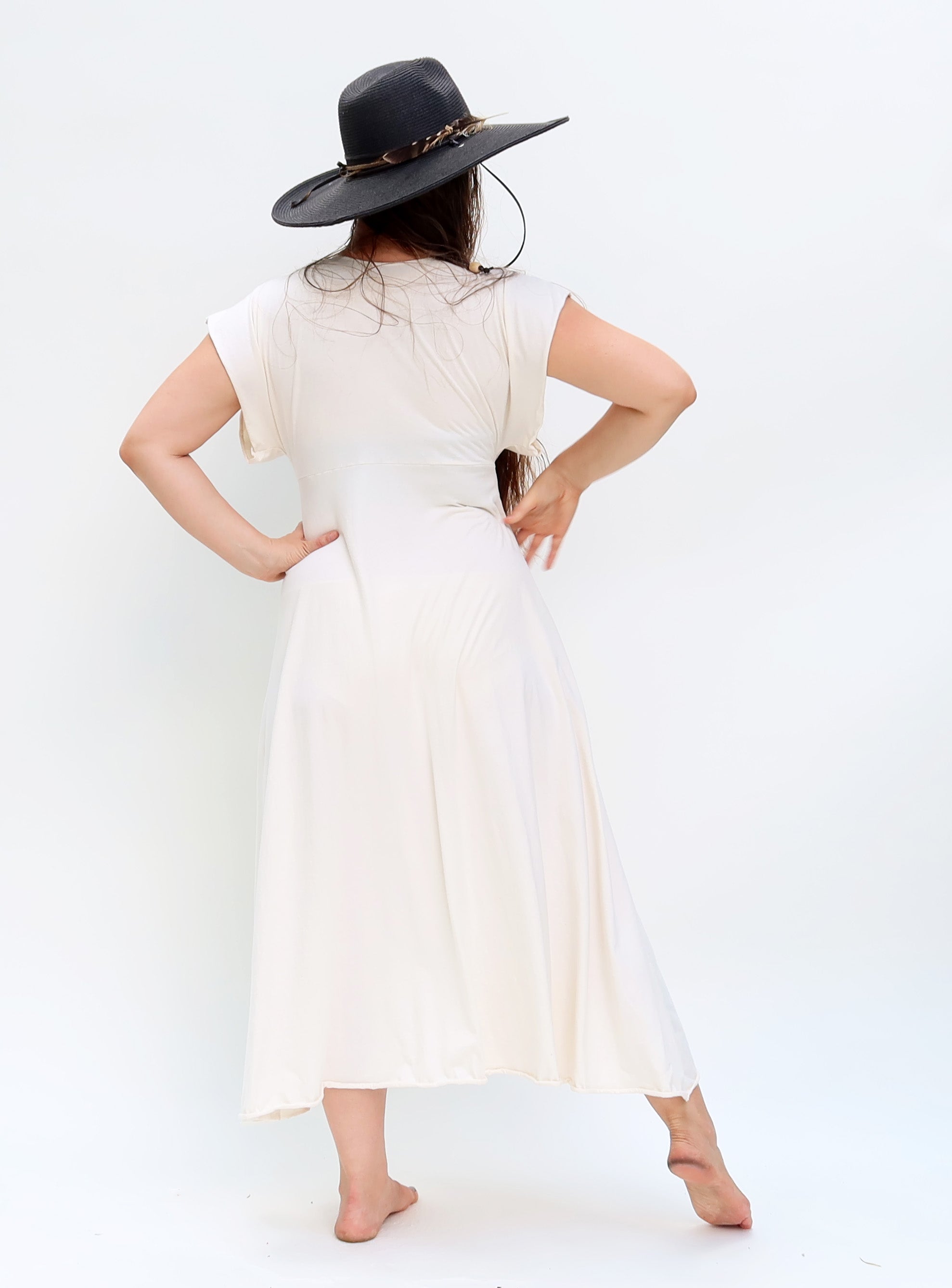 Style – A modern take on a traditional design, the kimono silhouette has a plunging sensual neckline and open sleeve. The roomy Kimono Sleeve design is a welcome shape on hot balmy days when sweating is expected but arm coverage is needed. For a more modesty neckline pair with a Boob Tube underneath.