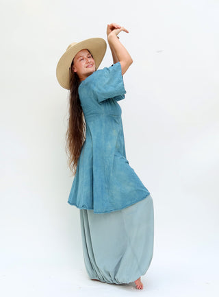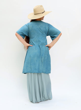 Each garment is made-to-order and ships in 3-4 weeks! We hand cut, sew, and dye all garments at our studio in Greensboro North Carolina based on your unique choices. We are a small team of artisans who are paid premium wages and work in a beautiful and peaceful studio space. Your purchase with us is a commitment to support transparency, sustainability, and a healthy work environment for the artist that make your clothing!!