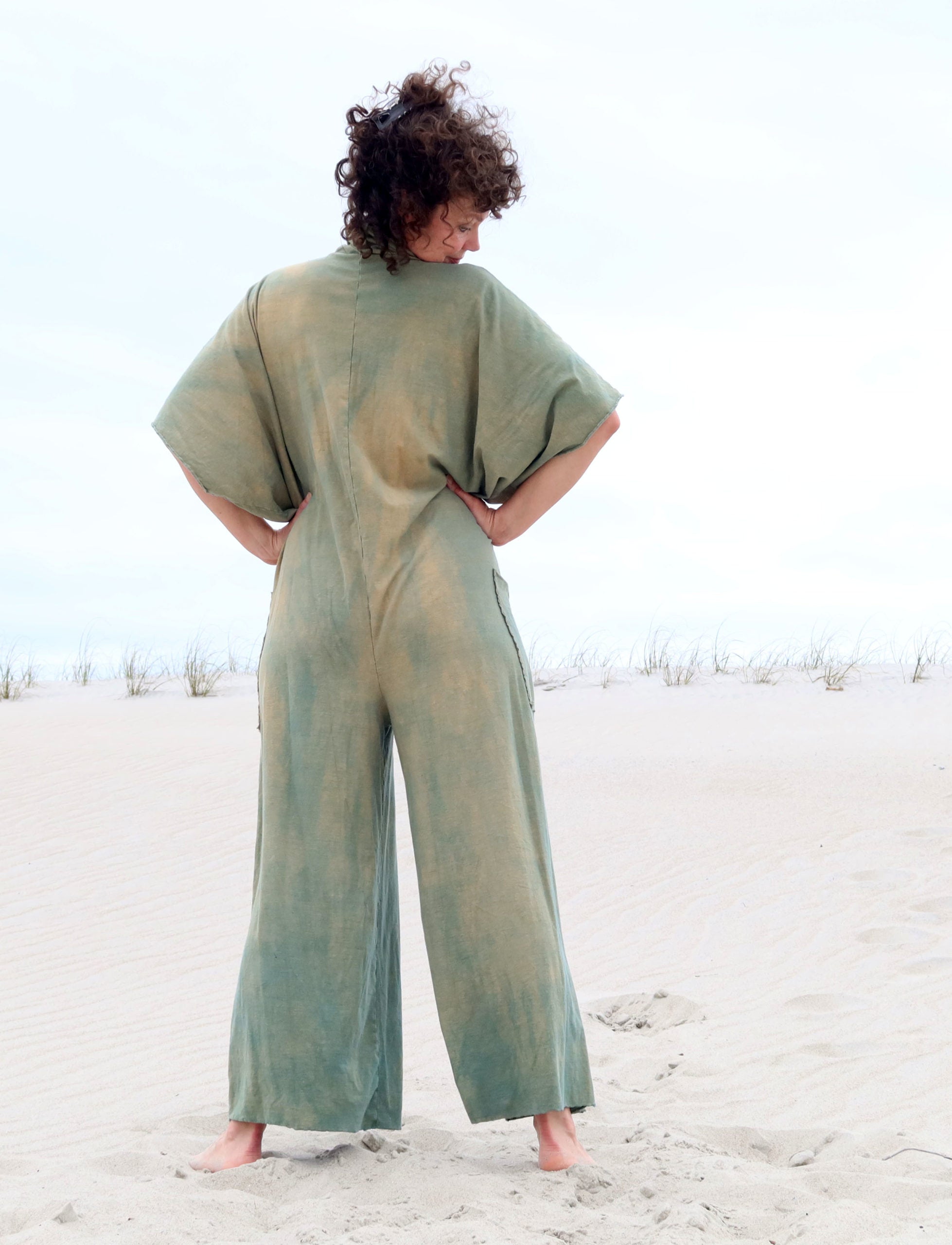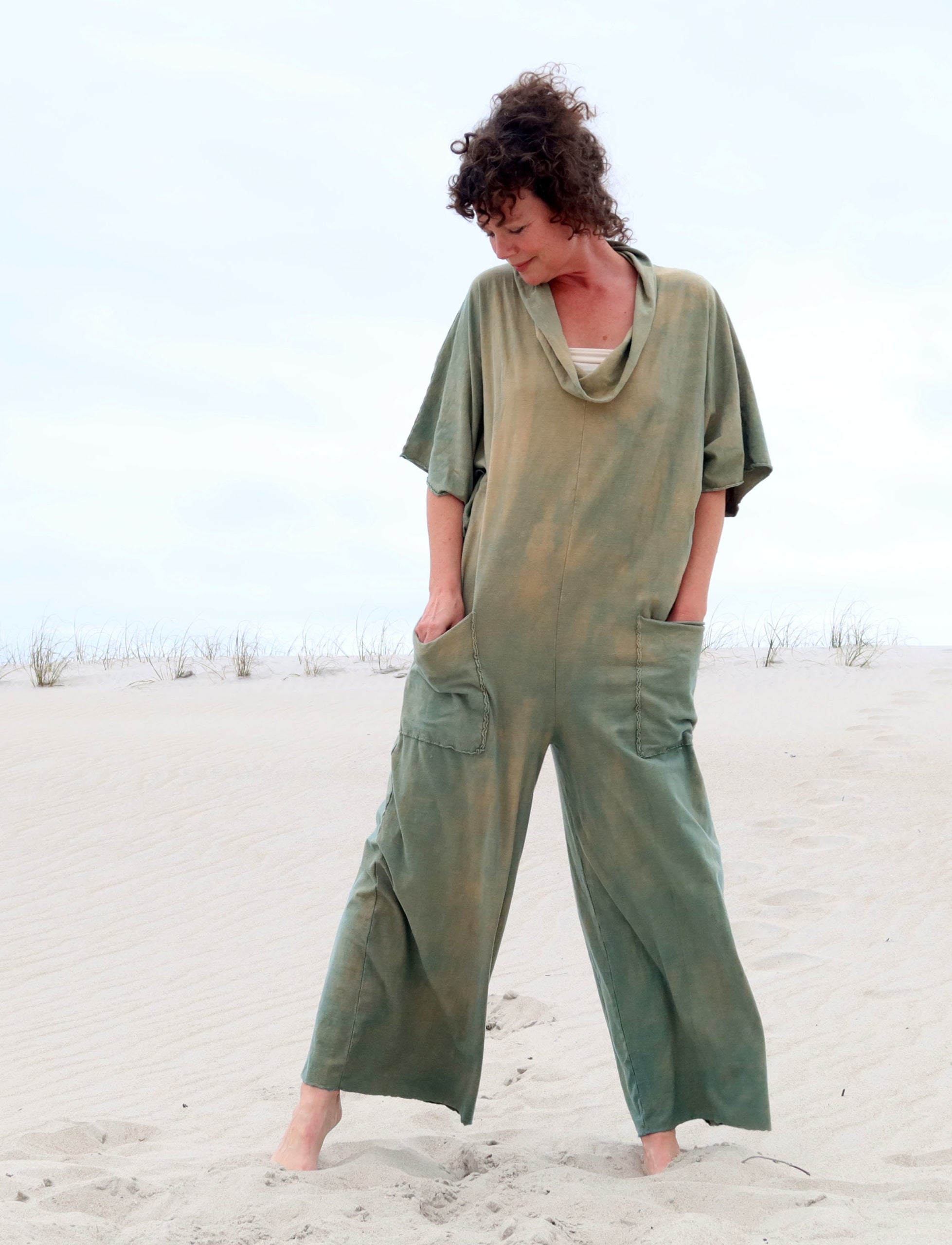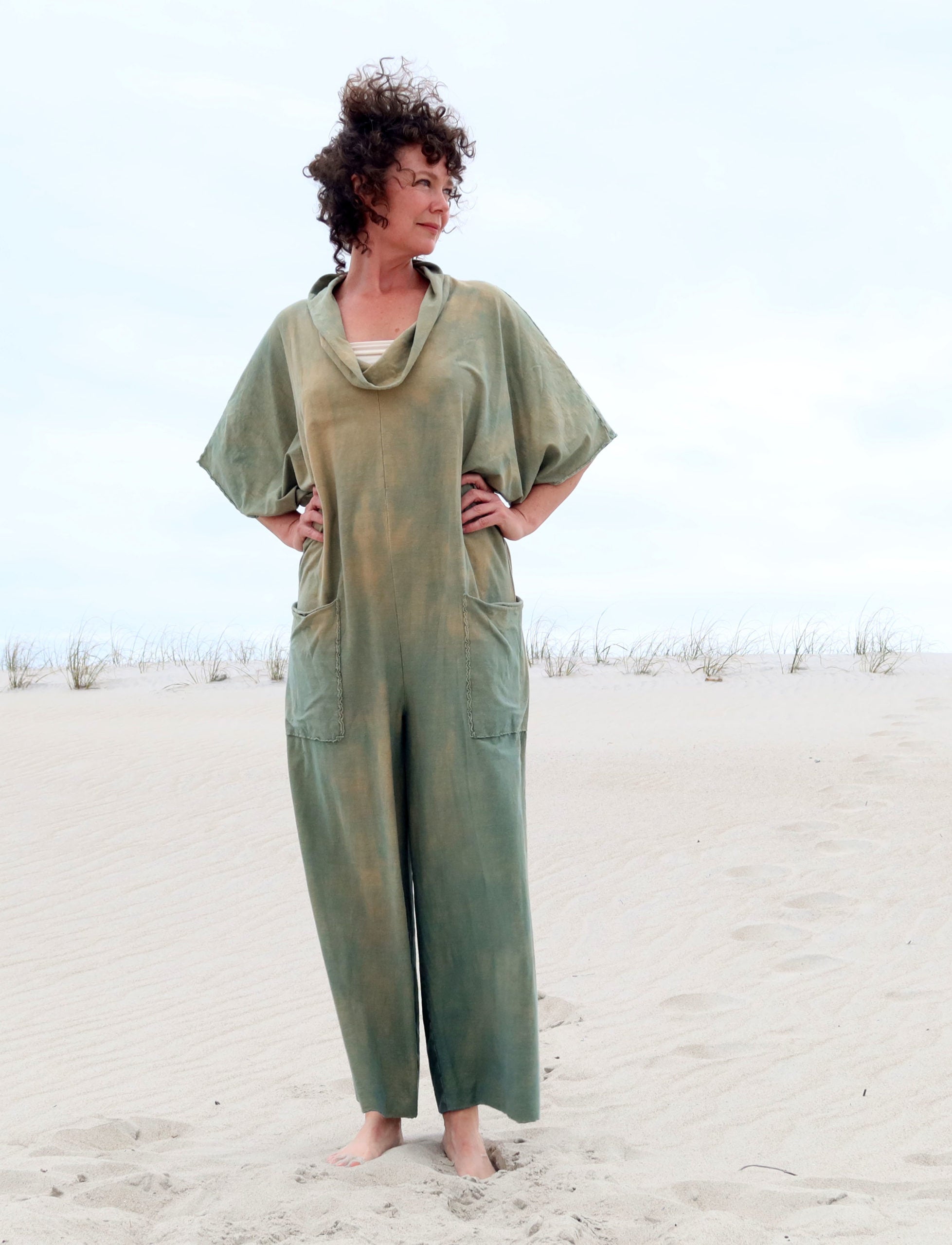 Each garment is made-to-order and ships in 3-4 weeks! We hand cut, sew, and dye all garments at our studio in Greensboro North Carolina based on your unique choices. We are a small team of artisans who are paid premium wages and work in a beautiful and peaceful studio space. Your purchase with us is a commitment to support transparency, sustainability, and a healthy work environment for the artist that make your clothing!!